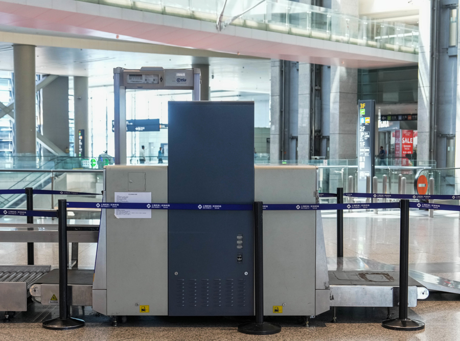 此前,旅客需经防爆检测、行李安检、人身安检三重检查,高峰时常遇排队久、搬运行李不便等问题。如今,虹桥机场T2等入口处的金属安检门、X射线安检仪已收起待移走,旅客经过防爆检测后可直接进入航站楼。