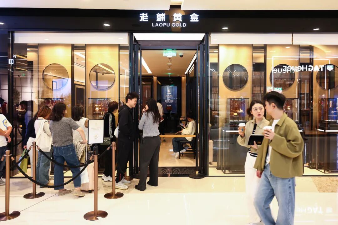 上海老铺门口排队的现象并非个案。在一些诸如小红书的社交媒体上,不少网友PO出了位于北京SKP老铺黄金门口的排队盛况。